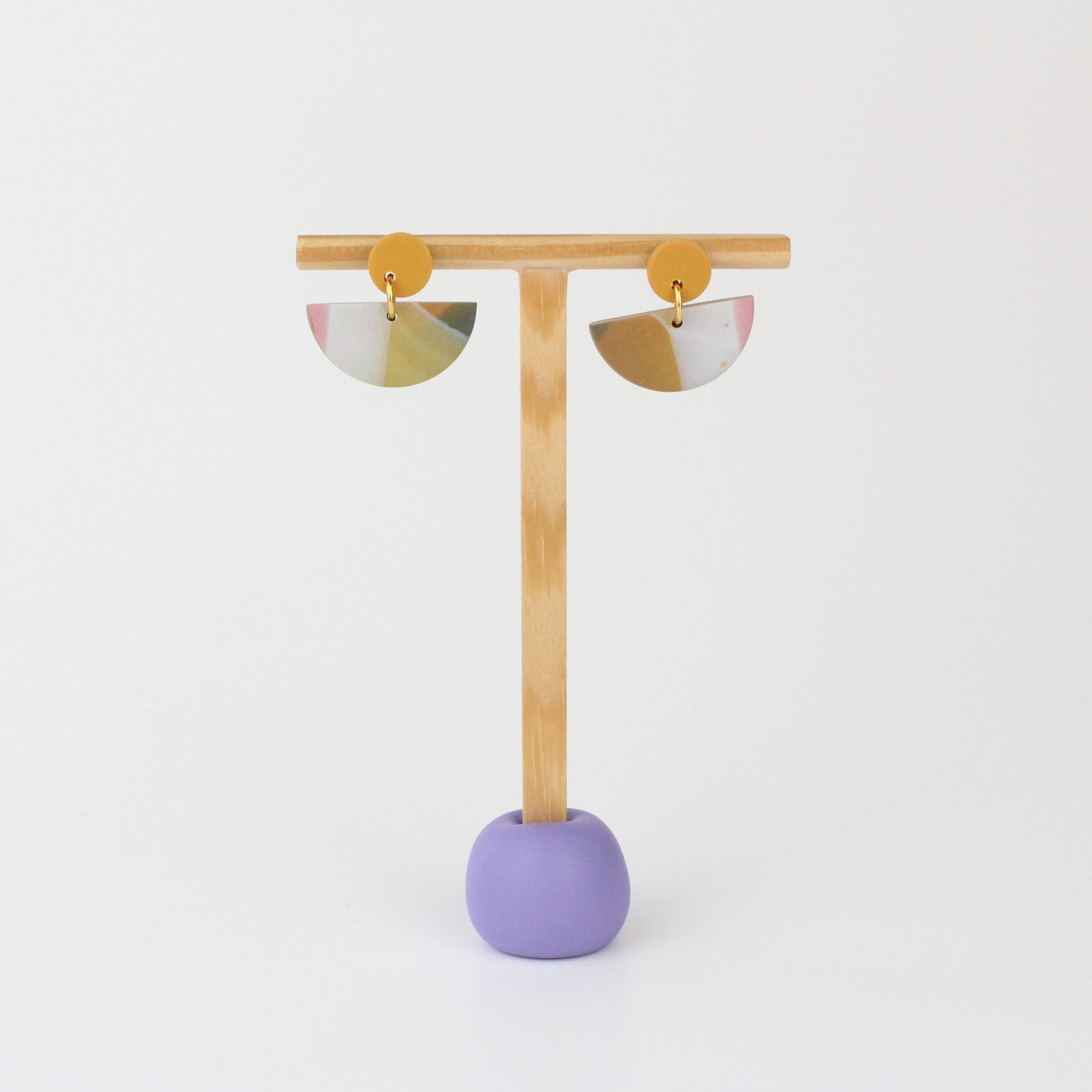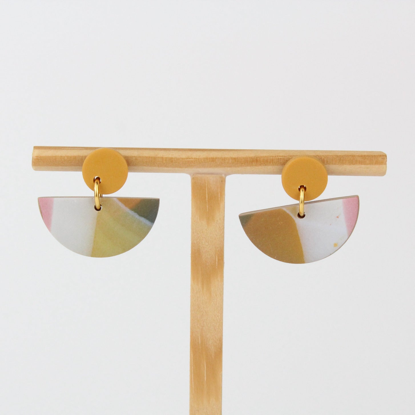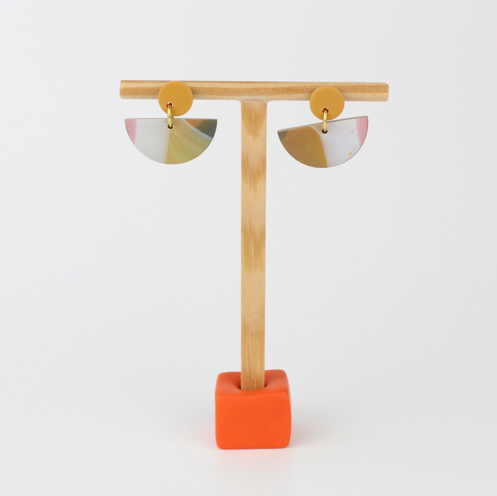 Zweiteilige Ohrringe, marmoriert in erdigen Farben. Die Marmorierung macht jeden einzelnen Ohrring zu einem besonderen Unikat.